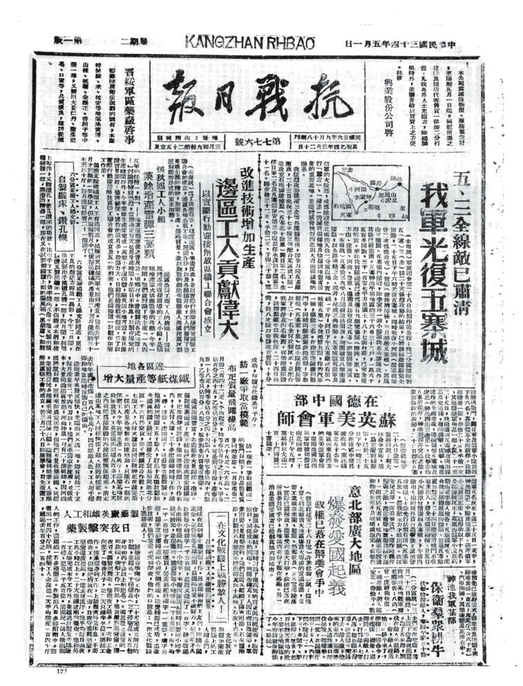 抗戰(zhàn)時期,忻州既是晉察冀、晉綏兩大根據(jù)地的中心腹地,也是抗戰(zhàn)初期全面抗敵的主戰(zhàn)場。忻州以其地理咽喉、戰(zhàn)役要沖、根據(jù)地核心和人民戰(zhàn)爭典范的多重角色,成為抗日戰(zhàn)爭中抵御日軍侵略、堅(jiān)持?jǐn)澈蠖窢幍膽?zhàn)略支點(diǎn)之一。其歷史貢獻(xiàn)不僅體現(xiàn)在軍事上,更彰顯了中華民族不屈不撓的抗戰(zhàn)精神。隨著八路軍平型關(guān)大捷、雁門關(guān)伏擊戰(zhàn)、夜襲陽明堡飛機(jī)場等戰(zhàn)役勝利,1937年11月7日晉察冀軍區(qū)在五臺成立。12月11日,《抗敵報》誕生。1940年11月,《抗敵報》改名為《晉察冀日報》,鄧拓任報社主任?!犊箶硤蟆纷畛踉谖迮_石嘴村石印,后改鉛印。1938年1月,晉察冀邊區(qū)行政委員會在河北阜平成立,兩月后,邊區(qū)行政委員會遷駐五臺射虎川臺麓寺,報社、印刷廠分駐?;垅?、蛤蟆石古佛寺。1940年9月18日,晉綏分局機(jī)關(guān)報《抗戰(zhàn)日報》,伴隨著隆隆炮火聲,在距離忻州不遠(yuǎn)的興縣艱難創(chuàng)刊。自此,那些戰(zhàn)地記者、通訊員甚或普通民眾,有名的,無名的,以個人名義,以集體名義,在極其艱苦的條件下,用滾燙筆尖秉筆直書,為我們珍存了那些發(fā)生在忻州大地上前仆后繼、可歌可泣的抗戰(zhàn)故事,也讓今天的人們一旦捧讀就會熱血沸騰。