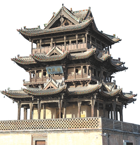 山西運(yùn)城萬(wàn)榮縣秋風(fēng)樓的每一層都裝飾著懸魚(yú)