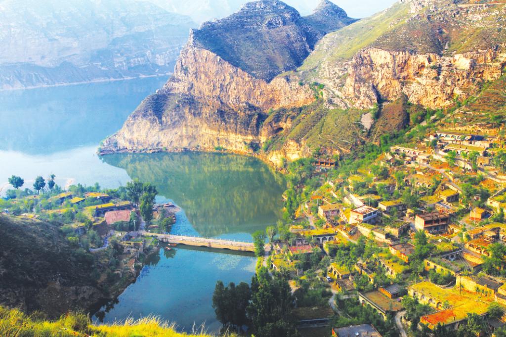 在黃河上形如半島的一個(gè)回水灣上,清清的關(guān)河水從東邊流來,匯入了黃河。對(duì)面是高山和村莊上的排排石頭窯洞,一層一層地排列在緩坡的綠蔭里。河邊有果圃,河中有捕魚船,關(guān)河上還有石拱平面橋,過得去卡車,更過得去羊馬驢騾。從山水形勢(shì)上看,這里是高崖深壘,有渡口,從大面上看是一個(gè)死角,然而又是一個(gè)興于明盛于清的重要水旱碼頭,有長(zhǎng)城、有烽火臺(tái)和古堡。康熙四十年(公元1701年)西北放墾,這里成為北糧進(jìn)入晉地的轉(zhuǎn)運(yùn)點(diǎn)。北上的晉商也由此進(jìn)入黃河上游,關(guān)河口也就成了糧食、茶葉、布匹和皮毛、牲畜交流互換的水上集散地。