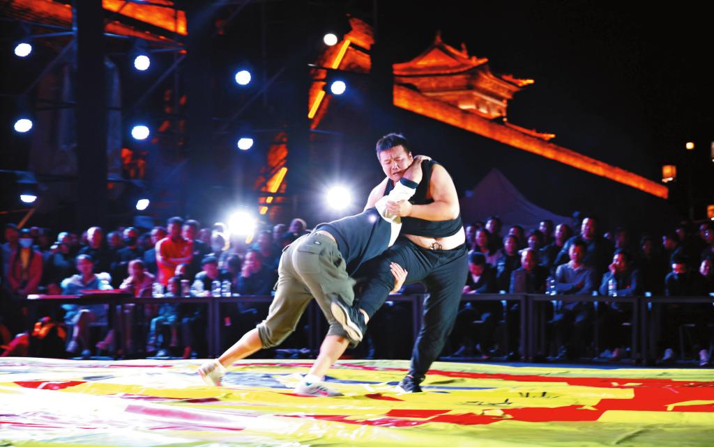 這些都是推測,但撓羊賽最為鼎盛而且聞名全國,卻是在新中國成立以后。為增強人民體質(zhì),大興體育運動,忻州奇村鄉(xiāng)的崔富海1959年奪得第一屆全運會摔跤金牌,1960年又奪得全國錦標賽冠軍。1960年在全國文教群英大會上,忻州(當時稱忻定縣)被譽為我國聞名的“摔跤之鄉(xiāng)”。這兩次全國冠軍的獲得和“摔跤之鄉(xiāng)”的稱謂極大地刺激了本地的摔跤運動,忻州地區(qū)體委開始組建摔跤隊,后來省體委更將摔跤基地建在忻州城。忻、定、原各縣體育部門也都開始挖掘本地跤手,看到有培養(yǎng)前途的便招工安排工作,在我們村周圍便有四五個跤手被安排到原平糧食部門和建筑公司,其中兩個都是我的小學同學。既然摔跤能安排工作,年輕人便都奔摔跤而來。以前廟會,中學生從不上跤場,1967、1968年左右,崞陽每有摔跤活動,都離不開范中學生,我的高二、高三同學中就出了幾個摔跤好手,上了跤場摔倒四個五個不在話下,在較小的場合則往往“撓羊”。1968年,我們從學校回村后,村里沒有其它娛樂活動,只是三天兩頭演電影,雖然演的都是《地雷戰(zhàn)》《地道戰(zhàn)》《南征北戰(zhàn)》等片子,還是哪村演電影就到哪村看,一演電影就摔跤,六月十三到崞陽,七月二十二到原平,反正年輕,有的是精力。去了主要為的是看摔跤……而在政府支持下,六月十三、七月二十二的摔跤活動也越來越具規(guī)模……