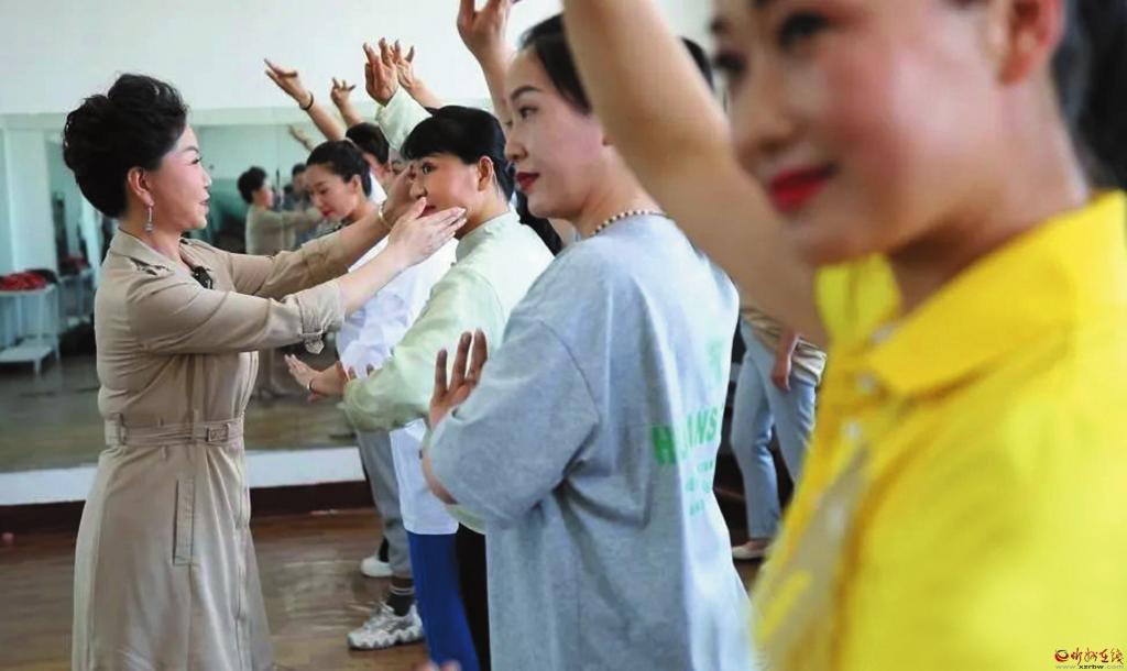 郝云婧在指導(dǎo)學(xué)員形體動作
