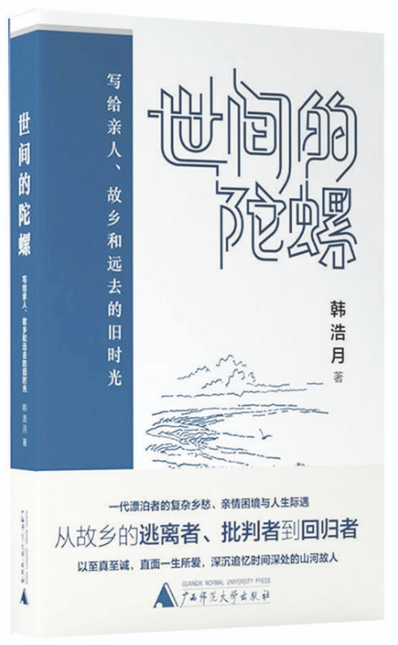 人不管走得多遠(yuǎn),最終都要和故鄉(xiāng)的人、故鄉(xiāng)的山河、故鄉(xiāng)的那段歲月握手言和。在《世間的陀螺》這本散文集里,韓浩月把故人、故鄉(xiāng)、故事一一請(qǐng)進(jìn)書中、銘刻心間,讓其成為自己生命中的光亮,照耀未來(lái)的道路。如他自己所說(shuō)的,“從一個(gè)出走者和背叛者變成一個(gè)回歸者”,回歸并不單指肉體層面,把故鄉(xiāng)一直裝在心里的人便是永恒的回歸者。無(wú)論親人是生是死,無(wú)論故鄉(xiāng)是新是舊,一直對(duì)其不離不棄的人,才是故鄉(xiāng)大地懷抱里永遠(yuǎn)長(zhǎng)不大的孩子——想哭就哭,想笑就笑,想跳就跳,想回來(lái)就回來(lái)。(張家鴻)
