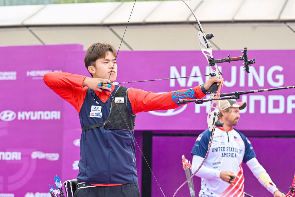新華社南京10月19日電(記者王恒志)2025現(xiàn)代汽車·射箭世界杯總決賽19日在江蘇南京落幕,中國隊(duì)兩位女選手李佳蔓、朱靜怡和男子選手考文超均止步反曲弓首輪比賽,美國老將埃利森和韓國名將安山分別奪得男、女反曲弓金牌。