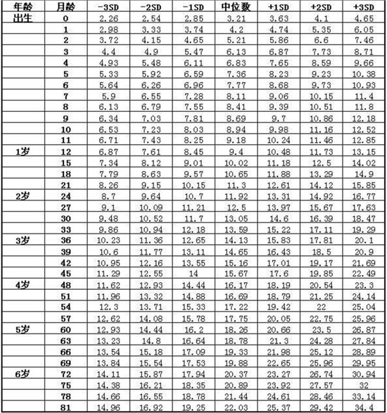 在兒童營養(yǎng)評價中,年齡別體重和體質(zhì)指數(shù)(BMI)是兩個重要的評價指標,常用于營養(yǎng)不良及超重、肥胖的篩查。以下表格為嬰幼兒體重對照表,家長們先自己查查孩子現(xiàn)在處在哪個位置,稍后帶領(lǐng)大家一起進入胖瘦辯論局。