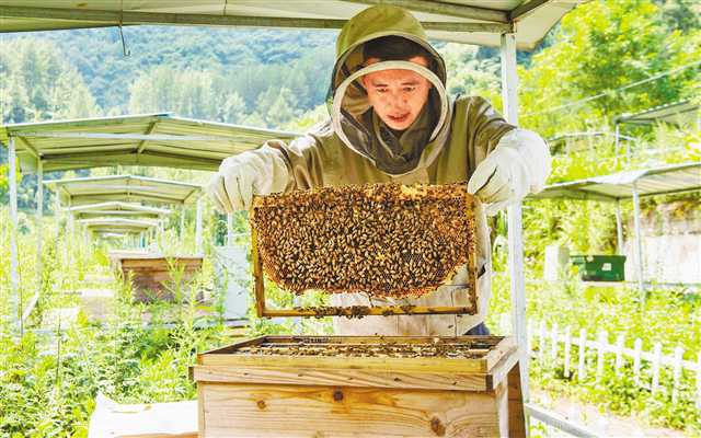今年4月,重慶市石柱縣中益鄉(xiāng)鹽井村,蜜蜂的嗡鳴聲奏響了致富交響曲。自從中益鄉(xiāng)發(fā)展了電商平臺(tái),陳小平的蜂蜜生意越來(lái)越紅火?!傲碌捉桓读诉@500群蜂種,今年就能再增收25萬(wàn)元。”鹽井村蜂農(nóng)陳小平說(shuō)。2016年開(kāi)始養(yǎng)蜂至今,陳小平的蜜蜂已經(jīng)從最初的30多群逐年擴(kuò)增至如今的300多群,2019年,2000斤的蜂蜜產(chǎn)量為他帶來(lái)20萬(wàn)元的收入。