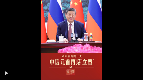 四年前的2月4日,習近平主席在會見普京總統(tǒng)時曾提到“立春”。四年后的同一天,中俄元首再話“立春”。作為中國傳統(tǒng)二十四節(jié)氣之首,立春象征著春回大地,代表著新的開始。再啟新程,中俄共同擘畫兩國關(guān)系新的藍圖。