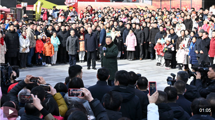 中華民族傳統(tǒng)節(jié)日春節(jié)即將到來之際,中共中央總書記、國家主席、中央軍委主席習近平在北京考察并看望慰問基層干部群眾,向全國各族人民和香港同胞、澳門同胞、臺灣同胞、海外僑胞拜年!
