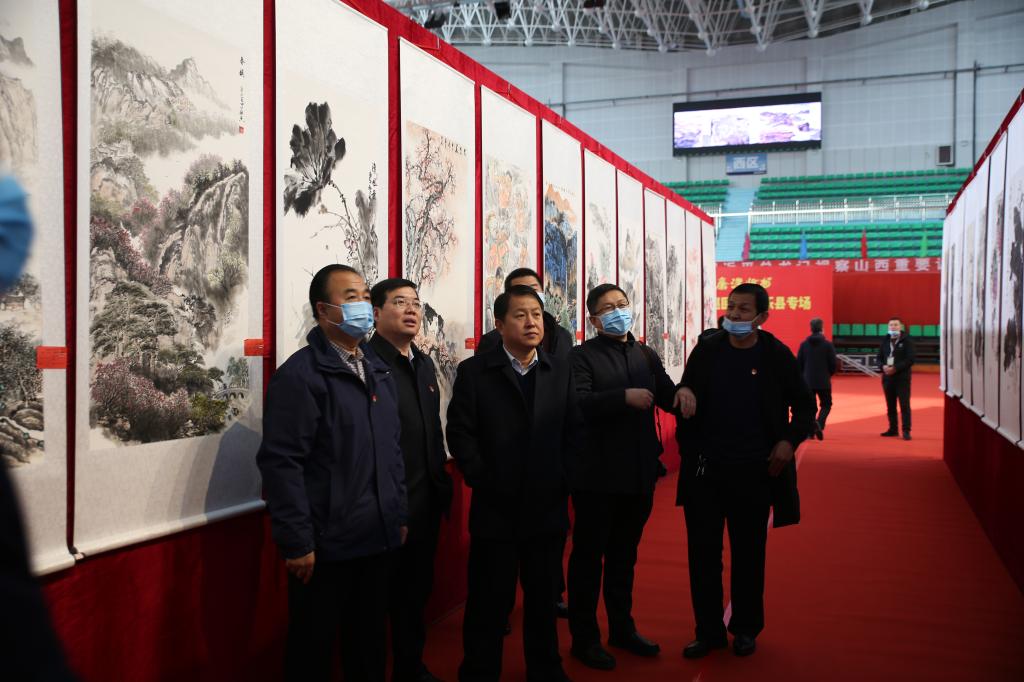 縣紀委監(jiān)委領導班子參觀“清廉靜樂”第一屆廉政文化書畫筆會現場。