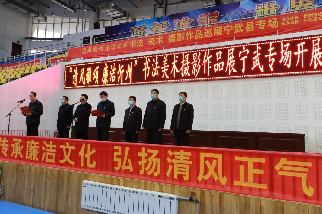 筆墨書廉潔,丹青揚正氣。11月27日,由忻州市紀(jì)委監(jiān)委主辦、寧武縣紀(jì)委監(jiān)委承辦的“清風(fēng)雅頌·廉潔忻州”書法美術(shù)攝影作品巡展寧武縣專場在縣體育館隆重開展。寧武縣委書記任寧虎在開展儀式上講話并宣布開展。縣委常委、縣紀(jì)委書記、監(jiān)委主任尹志剛主持開展儀式??h四套班子領(lǐng)導(dǎo)和其他縣處級領(lǐng)導(dǎo),各縣直單位、各鄉(xiāng)(鎮(zhèn))的主要領(lǐng)導(dǎo),全縣紀(jì)檢監(jiān)察干部,共計180余人參加儀式。