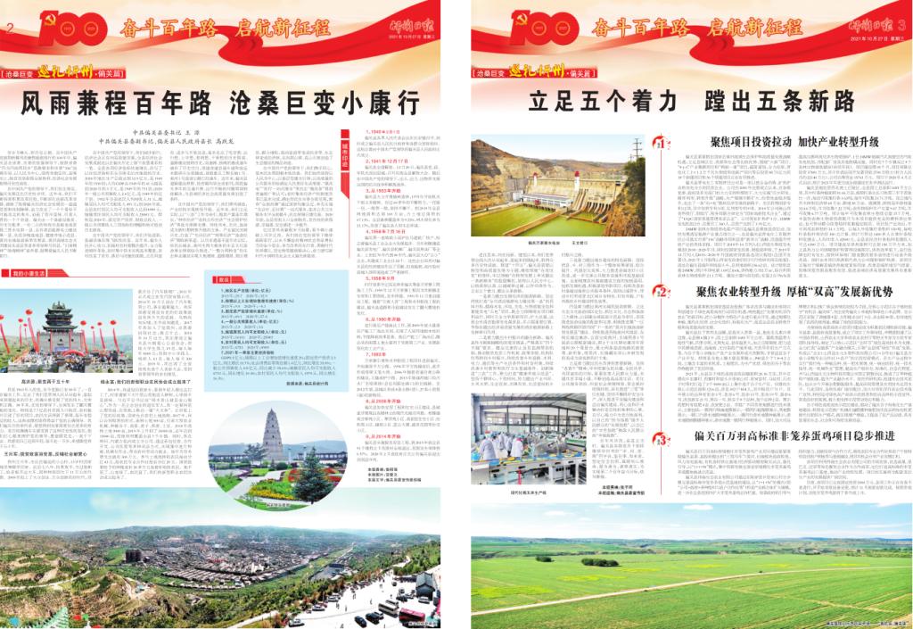 穿歲月峰頭,伴歷史云煙。在中國共產(chǎn)黨披荊斬棘風(fēng)雨兼程砥礪前行的100年中,偏關(guān)縣在省委、市委的堅強領(lǐng)導(dǎo)下,按照省委“四為四高兩同步”思路要求和市委“336”戰(zhàn)略布局,以人民為中心,堅持舉旗定向、迎難而上,脫貧攻堅取得全面勝利,經(jīng)濟社會發(fā)展取得歷史性成效。