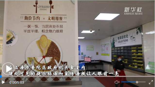“點菜點少、不夠再添”“光盤行動、從我做起”“厲行節(jié)約、反對浪費”……在上海市普陀區(qū)政府機(jī)關(guān)食堂內(nèi),隨處可見的提示標(biāo)語和宣傳海報讓人眼前一亮。