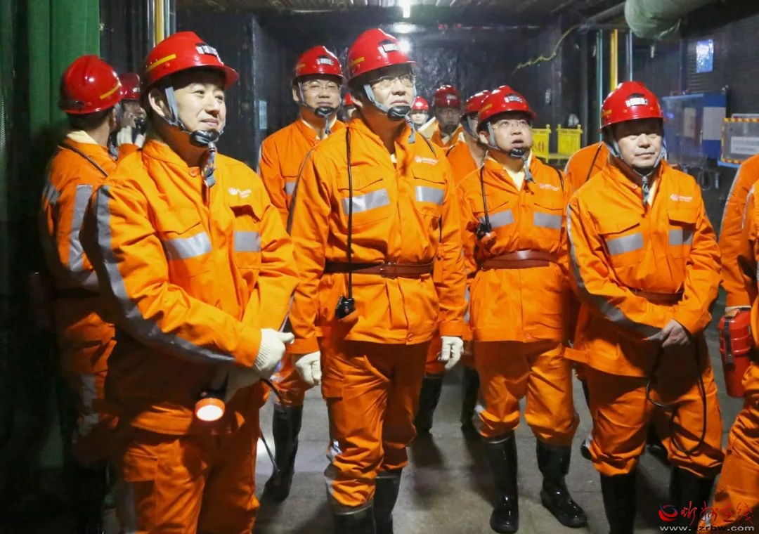 調(diào)研現(xiàn)場。張宇 攝 在國家能源集團上榆泉煤礦,胡海軍、李建國一行深入井下采掘作業(yè)一線,督導(dǎo)檢查工作面現(xiàn)場管理、瓦斯治理、風(fēng)險防控等各項安全措施落實情況和安全生產(chǎn)標準化、智能化建設(shè)情況,現(xiàn)場察看“一通三防”實操室和機電設(shè)備實操室運行狀況。