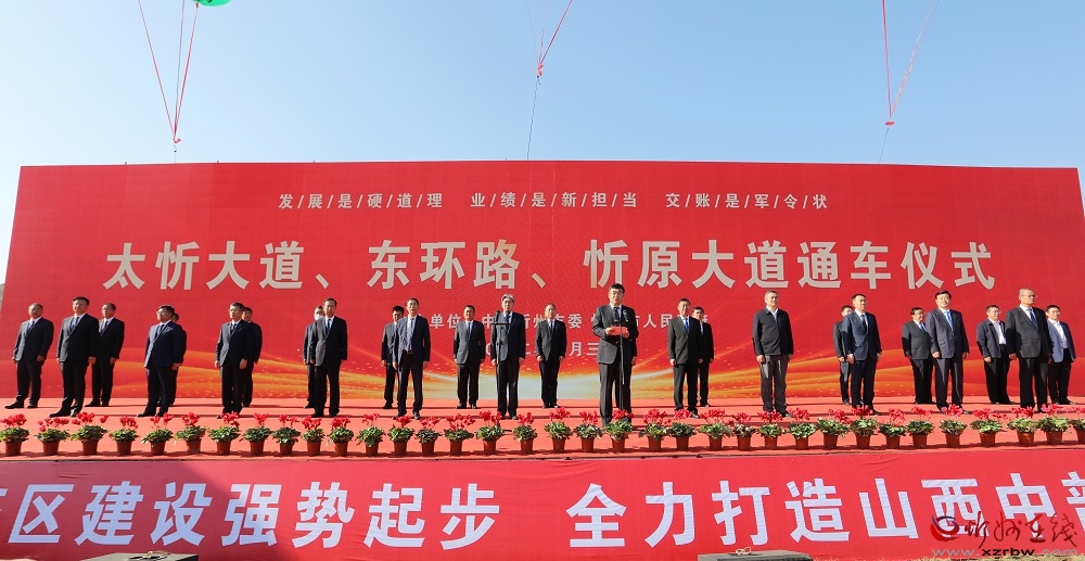 9月30日,我市舉行太忻大道、東環(huán)路、忻原大道通車儀式,市委書記朱曉東出席儀式并宣布太忻大道、東環(huán)路、忻原大道通車。市委副書記、市長李建國主持儀式。市委副書記、政法委書記郭奔勝,市人大常委會主任王珍,市政協(xié)主席范建民,山西建投集團(tuán)公司副董事長、總經(jīng)理徐忠和,市領(lǐng)導(dǎo)劉卓良、趙新年、張文偉、溫建軍、張敏、張宇光、史紅波、賈玲香、崔崢嶺、李碩、王建峰、張文斌,市政府秘書長張艮生,中鐵十七局集團(tuán)公司和中建三局集團(tuán)公司相關(guān)負(fù)責(zé)人出席。副市長耿鵬鵬介紹項目建設(shè)情況。