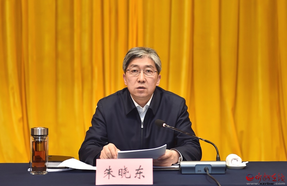 朱曉東傳達(dá)精神并提出要求。馮曉磊 攝 會議指出,在全省上下深入學(xué)習(xí)貫徹黨的二十大精神和習(xí)近平總書記考察調(diào)研山西重要講話重要指示精神、奮力推動高質(zhì)量發(fā)展的關(guān)鍵時刻,省委舉辦這次省管主要領(lǐng)導(dǎo)干部專題研討班,充分體現(xiàn)了省委捍衛(wèi)“兩個確立”、做到“兩個維護(hù)”的政治自覺和行動自覺,昭示了省委為三晉謀轉(zhuǎn)型、為人民謀幸福的使命擔(dān)當(dāng)。全市上下要提高站位,深學(xué)細(xì)悟,切實(shí)把思想和行動統(tǒng)一到省委書記藍(lán)佛安在省管主要領(lǐng)導(dǎo)干部專題研討班上的重要講話精神上來,深入學(xué)習(xí)“八個深刻領(lǐng)會”,在踐行領(lǐng)袖囑托中立根鑄魂,進(jìn)一步強(qiáng)化堅(jiān)定捍衛(wèi)“兩個確立”的政治自覺。要深入思考事關(guān)高質(zhì)量發(fā)展和現(xiàn)代化建設(shè)的重大問題,在服務(wù)國省大局中找準(zhǔn)定位,進(jìn)一步強(qiáng)化推動做好工作的歷史主動。要深刻領(lǐng)悟“五種理念”,在解放思想中提振精神,進(jìn)一步強(qiáng)化擔(dān)當(dāng)作為、攻堅(jiān)克難的行動自覺。