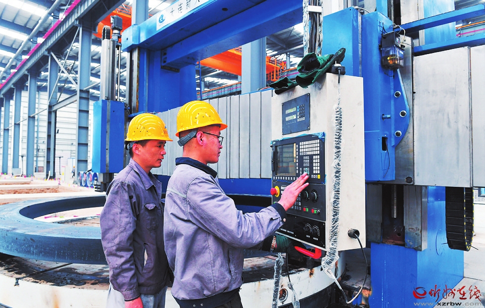 在山西寶航重工有限公司生產(chǎn)車間內(nèi),工人正在操作加工設備。 暢 雪 郗宏光攝