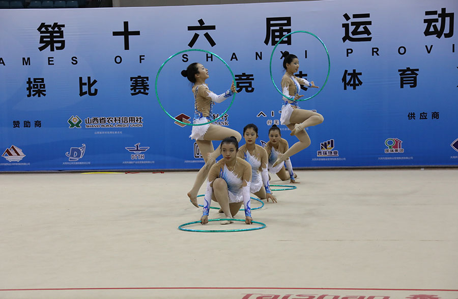 集體項目,太原隊以22.00分、陽泉隊以20.55分、大同隊以18.25分位列甲組五圈前三名。晉中隊以18.80分、陽泉隊以17.40分、長治隊以15.20分排乙組五圈前三位。陽泉隊、運城隊排丙A組五圈前兩位,得分為19.10分和15.65分;運城隊、陽泉隊、長治二隊位列丙B組五圈前三位,得分為17.70分、17.05分、14.50分;陽泉一隊、太原隊、陽泉二隊獲得丙C組五球前三名,得分為21.85分、20.50分、19.25分。經(jīng)過精彩較量,6市代表隊共收獲53枚獎牌。
