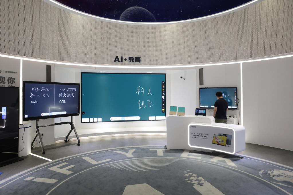 5月30日,在合肥科大訊飛人工智能體驗(yàn)館,參觀者體驗(yàn)應(yīng)用于教育行業(yè)的人工智能產(chǎn)品。新華社記者杜瀟逸攝
