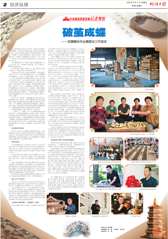 忻州梯級(jí)培育6個(gè)市級(jí)專業(yè)鎮(zhèn),定襄雕刻榜上有名,全市惟一的“一縣雙鎮(zhèn)”花落定襄。法蘭眾望所歸,雕刻何以雀屏中選?
