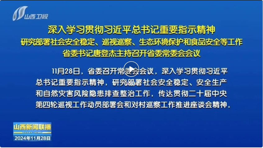 | 研究部署社會(huì)安全穩(wěn)定、巡視巡察、生態(tài)環(huán)境保護(hù)和食品安全等工作 省委書記唐登杰主持召開省委常委會(huì)會(huì)議 |