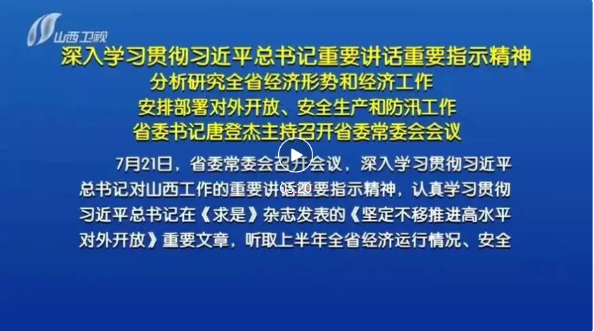 7月21日,省委常委會召開會議,深入學(xué)習(xí)貫徹習(xí)近平總書記對山西工作的重要講話重要指示精神,認(rèn)真學(xué)習(xí)貫徹習(xí)近平總書記在《求是》雜志發(fā)表的《堅(jiān)定不移推進(jìn)高水平對外開放》重要文章,聽取上半年全省經(jīng)濟(jì)運(yùn)行情況、安全生產(chǎn)形勢和防汛工作情況匯報(bào),研究部署下一步工作,審議通過《關(guān)于嚴(yán)格落實(shí)“四水四定”的實(shí)施方案》。省委書記唐登杰主持會議。