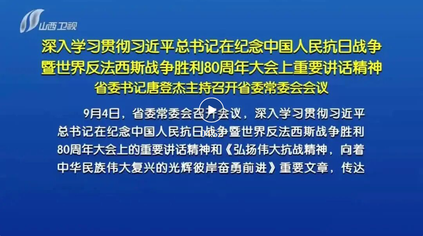 會(huì)議指出,習(xí)近平總書記在紀(jì)念中國(guó)人民抗日戰(zhàn)爭(zhēng)暨世界反法西斯戰(zhàn)爭(zhēng)勝利80周年大會(huì)上的重要講話,全面回顧了中國(guó)人民抗日戰(zhàn)爭(zhēng)的偉大歷程,深刻闡釋了抗戰(zhàn)勝利的重大意義,再次宣示了中國(guó)人民“銘記歷史、緬懷先烈、珍愛和平、開創(chuàng)未來”的堅(jiān)定立場(chǎng),具有很強(qiáng)的政治性、思想性、戰(zhàn)略性和指導(dǎo)性,必將激揚(yáng)起為實(shí)現(xiàn)中華民族偉大復(fù)興、推動(dòng)構(gòu)建人類命運(yùn)共同體而奮斗的磅礴偉力。全省上下要堅(jiān)持以習(xí)近平新時(shí)代中國(guó)特色社會(huì)主義思想為指導(dǎo),深入學(xué)習(xí)貫徹習(xí)近平總書記重要講話精神,深刻領(lǐng)悟“兩個(gè)確立”的決定性意義,堅(jiān)決做到“兩個(gè)維護(hù)”,堅(jiān)定不移走中國(guó)特色社會(huì)主義道路,傳承和弘揚(yáng)偉大抗戰(zhàn)精神,踔厲奮發(fā)、勇毅前行,努力在推動(dòng)資源型經(jīng)濟(jì)轉(zhuǎn)型發(fā)展上邁出新步伐,奮力譜寫三晉大地推進(jìn)中國(guó)式現(xiàn)代化新篇章。要充分發(fā)揮我省紅色文化資源豐富的優(yōu)勢(shì),做好抗戰(zhàn)史研究闡釋工作,更加注重用黨的優(yōu)良革命傳統(tǒng)和作風(fēng)教育人,教育引導(dǎo)全省廣大黨員干部群眾堅(jiān)定歷史自信、增強(qiáng)歷史主動(dòng),賡續(xù)紅色血脈、激發(fā)愛國(guó)熱情,把偉大抗戰(zhàn)精神一代代傳下去。要進(jìn)一步增強(qiáng)牢記囑托、感恩奮進(jìn)、頑強(qiáng)拼搏、真抓實(shí)干的斗志,堅(jiān)定扛牢國(guó)家資源型經(jīng)濟(jì)轉(zhuǎn)型綜改試驗(yàn)區(qū)建設(shè)、深化能源革命、打造內(nèi)陸地區(qū)對(duì)外開放新高地、促進(jìn)中部地區(qū)加快崛起、推動(dòng)黃河流域生態(tài)保護(hù)和高質(zhì)量發(fā)展等重大使命任務(wù),扎實(shí)推動(dòng)高質(zhì)量發(fā)展,不斷深化全方位轉(zhuǎn)型,統(tǒng)籌好發(fā)展和安全,努力完成全年經(jīng)濟(jì)社會(huì)發(fā)展目標(biāo)任務(wù),確?!笆奈濉表樌展?、“十五五”良好開局。要堅(jiān)持黨的全面領(lǐng)導(dǎo),堅(jiān)定扛牢管黨治黨政治責(zé)任,不斷提高各級(jí)黨組織的政治領(lǐng)導(dǎo)力、思想引領(lǐng)力、群眾組織力、社會(huì)號(hào)召力,以永遠(yuǎn)在路上的堅(jiān)韌和執(zhí)著推進(jìn)全面從嚴(yán)治黨,有力引領(lǐng)保障全省高質(zhì)量發(fā)展和現(xiàn)代化建設(shè)。