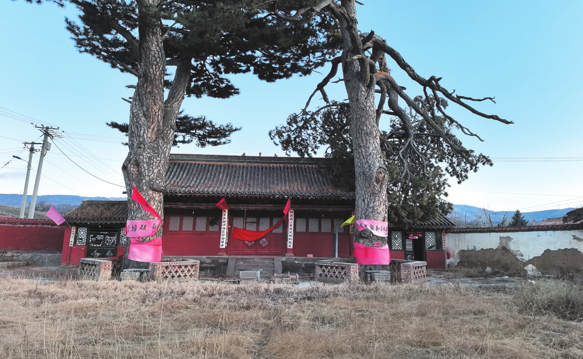 南屯龍王廟位于寧武縣寧化鎮(zhèn)南屯村中,坐東朝西,東西21.2米,南北33.5米,占地面積約700平方米,創(chuàng)建年代不詳,現(xiàn)存為清代建筑。一進(jìn)院布局。中軸線上分布有正殿、戲臺,兩側(cè)有偏殿、廂房。正殿面寬三間,進(jìn)深四椽,單檐懸山頂,五檁前廊式構(gòu)架。殿內(nèi)有壁畫,有碑兩通。戲臺面闊三間,進(jìn)深四椽,卷棚頂,檐下有三踩斗拱。北側(cè)廂房面寬九間,南側(cè)廂房面寬六間。大院內(nèi)有古松兩棵,保存較好。2015年8月忻州市人民政府公布南屯龍王廟為市級文物保護(hù)單位。