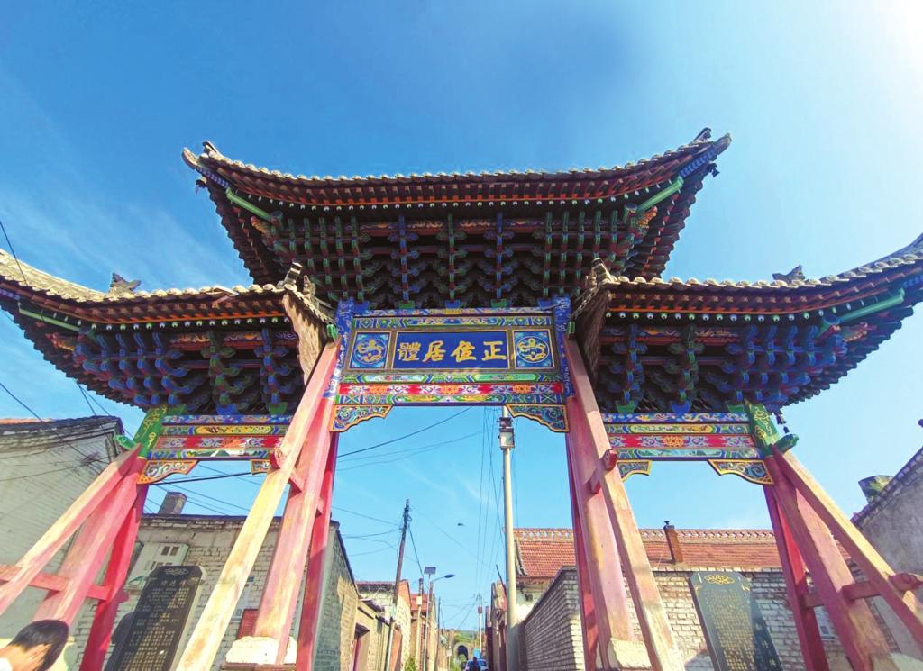 五寨縣三岔木牌坊坐落于三岔堡十字大街的北口,始建于明萬歷九年(1581年)。木牌坊坐北朝南,座基為60厘米高的石砌臺基。牌坊呈三項疊襯“品”字形制,四楹三門,坊高7.25米,通寬11.2米,其中門高3米,寬3.15米,車馬通行;兩邊門略低,高2.65米,寬2米,只呈門樣,不作通行。四楹都用雙木斜卡,并抱有雕獅的石鼓,以鐵條箍制,既固根基,又顯威嚴(yán)。欄坊下裝有木刻匾額,正面題“正位居體”,背面題“大觀在上”。頂端起脊彩飛,雙層檐頭,青瓦蓋頂;下檐五步彩飛檐頭拱,結(jié)構(gòu)奇巧,造型美觀,檐頭四角掛有風(fēng)鈴,微風(fēng)輕拂,鈴聲悠揚(yáng),蔚為壯觀。三岔木牌坊是五寨縣境內(nèi)僅存的一座木結(jié)構(gòu)明代古建筑,具有較高的建筑文化水平和藝術(shù)鑒賞價值。2007年6月6日,忻州市人民政府公布其為市級文物保護(hù)單位。