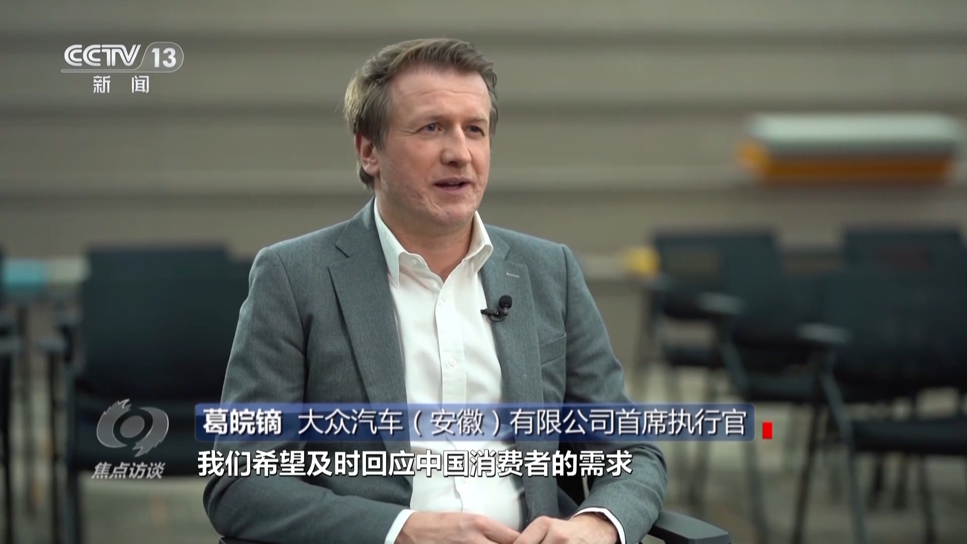 大眾汽車(安徽)有限公司首席執(zhí)行官 葛皖鏑:借助于這個研發(fā)中心,我們希望及時回應(yīng)中國消費者的需求,這意味著一方面,我們要打造大眾汽車集團首個專屬中國市場的電動汽車平臺;另外一方面,我們希望將其開發(fā)周期縮短約30%,這樣才能夠跟上中國市場的步伐。