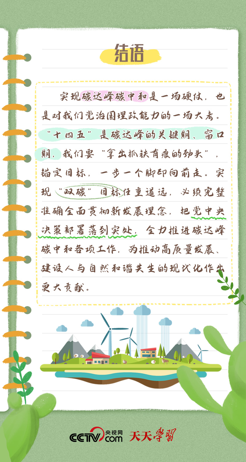 天天學(xué)習(xí)今年全國兩會,習(xí)近平總書記在政協(xié)聯(lián)組會上,對“雙碳”工作作出最新部署??倳洀?qiáng)調(diào):“全面準(zhǔn)確落實(shí)精準(zhǔn)治污、科學(xué)治污、依法治污方針,推動經(jīng)濟(jì)社會發(fā)展綠色化、低碳化,加強(qiáng)資源節(jié)約集約循環(huán)利用,拓展生態(tài)產(chǎn)品價(jià)值實(shí)現(xiàn)路徑,積極穩(wěn)妥推進(jìn)碳達(dá)峰碳中和,為高質(zhì)量發(fā)展注入新動能、塑造新優(yōu)勢?!?/p>