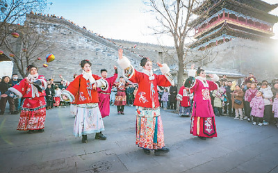 忻州古城南城門(mén)前的快閃表演。石薦文攝