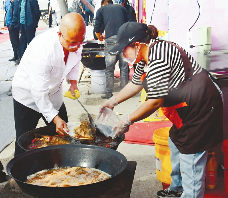 首屆熬魚美食節(jié)匯聚了代縣碗托、老咸菜、豆腐干等當?shù)亍凹亦l(xiāng)味”,12家熬魚商戶更是集體亮相,現(xiàn)場烹飪銷售。賈狗狗有著近40年的熬魚經(jīng)驗,今年備貨比往年更足、更早。