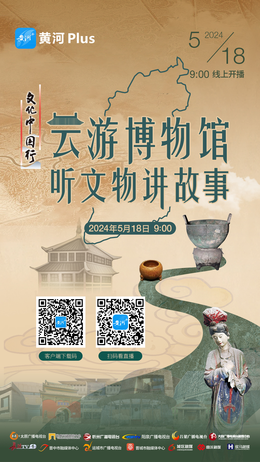 5月18日上午9時(shí),山西廣播電視臺(tái)視聽融媒體中心黃河Plus客戶端將聯(lián)合山西廣播電視臺(tái)晉南工作站、侯馬市融媒體中心、大同廣播電視臺(tái)融媒體中心、朔州市融媒體中心、忻州廣播電視臺(tái)、陽泉廣播電視臺(tái)新聞綜合頻道、呂梁廣播電視臺(tái)、晉中市融媒體中心、太原廣播電視臺(tái)新聞事業(yè)部、長治廣播電視臺(tái)新聞綜合頻道、晉城市融媒體中心、晉城市城區(qū)融媒體中心、運(yùn)城市廣播電視臺(tái)融媒體新聞中心、曲沃縣融媒體中心等15家執(zhí)行媒體單位(排名不分先后),對(duì)此次直播活動(dòng)進(jìn)行全方位推介,敬請(qǐng)期待!