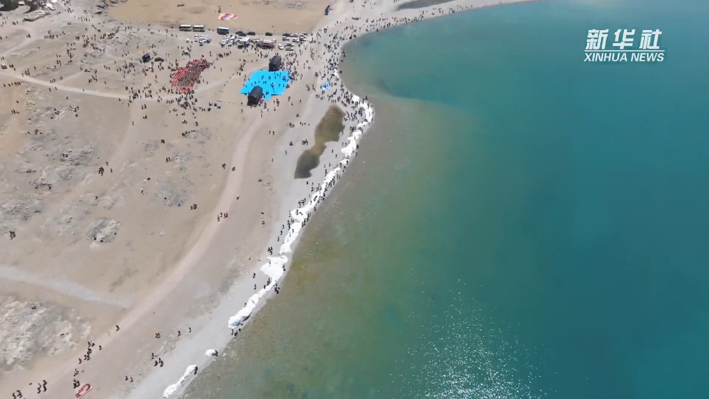 隨著氣溫的逐漸轉(zhuǎn)暖,納木錯進入開湖期。從高空俯瞰,冰面開始解凍,漂浮的冰塊散落在碧綠的湖面上,與遠(yuǎn)處的雪山相互輝映,美麗景色讓人嘆為觀止。