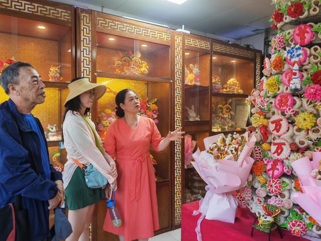 新華社西安6月19日電(記者孫正好)“沒(méi)想到一個(gè)面團(tuán),能被玩出這么多花樣!”在陜西韓城古城歷史文化街區(qū)的一家花饃店內(nèi),北京游客王華對(duì)著造型各異的韓城花饃發(fā)出感嘆。