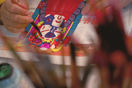 這么有趣的剪紙作品又是如何誕生的呢?走進(jìn)該博物館剪紙制作車間,只見學(xué)員們手中的刻刀上下跳動(dòng),一件件精美的剪紙作品雛形便逐漸顯現(xiàn)?!耙患艏堊髌返闹谱鹘^對(duì)不是靠簡(jiǎn)簡(jiǎn)單單的一把剪刀、一張紅紙就可以完成的,它要經(jīng)歷設(shè)計(jì)、刀刻、顏染、裝裱4個(gè)大步驟38個(gè)小步驟。”博物館講解員曹慧中指著剪紙學(xué)員對(duì)眾人說,“他們正在進(jìn)行的是刀刻這一道工序,我們不要求每個(gè)人每個(gè)工序都會(huì)都熟練,熟練的剪紙藝人制作一件剪紙作品也得花費(fèi)一天時(shí)間,剪紙的制作需要團(tuán)結(jié)協(xié)作而不是單打獨(dú)斗?!?/p>