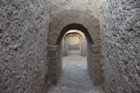 而M27獨居?xùn)|區(qū),間距達100余米,與前兩墓形成鮮明反差,墓磚無任何涂紅,隨葬品僅見素面灰陶罐、陶碗,東漢常見釉陶禮器(耳杯、案、盤等)完全消失,墓道呈“口小底大”特殊結(jié)構(gòu),墓室西北角設(shè)灶,突破同期墓葬的空間布局傳統(tǒng)。