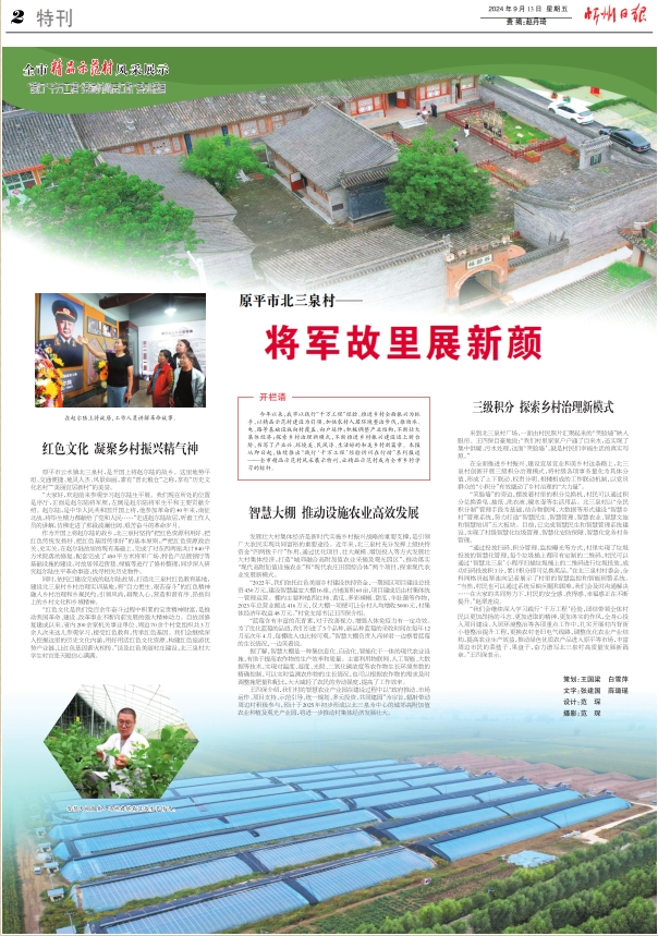 “紅色文化是我們黨百余年奮斗過程中積累的寶貴精神財富,是推動我國革命、建設(shè)、改革事業(yè)不斷向前發(fā)展的強大精神動力。自故居修復(fù)建成以來,省內(nèi)200余家機關(guān)事業(yè)單位、周邊70余個村黨組織共3萬余人次來這兒參觀學習,接受紅色教育,傳承紅色基因。我們會繼續(xù)深入挖掘這里的歷史文化內(nèi)涵,用好用活紅色文化資源,構(gòu)建紅色旅游優(yōu)勢產(chǎn)業(yè)鏈,讓紅色基因薪火相傳。”談及紅色美麗村莊建設(shè),北三泉村大學生村官張?zhí)炻斝判臐M滿。
