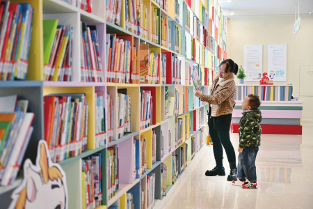 3月30日拍攝的山西省圖書館少年兒童館一角,家長帶著孩子選擇喜愛的繪本。連日來,省圖少兒館舉辦形式多樣的閱讀活動,開設各類課程,以滿足孩子們的閱讀需求,在潛移默化中提高孩子們的閱讀能力。