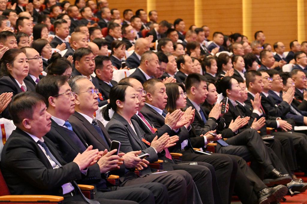 王建江講話。馮曉磊攝 王建江指出,全市各級人大及其常委會、各級人大代表要始終堅持以習(xí)近平新時代中國特色社會主義思想統(tǒng)攬人大工作,深入學(xué)習(xí)貫徹習(xí)近平法治思想、習(xí)近平總書記關(guān)于堅持和完善人民代表大會制度的重要思想,堅定不移把黨的領(lǐng)導(dǎo)貫穿人大工作全過程各方面,確保人大各項工作符合市委要求、切合忻州實(shí)際、貼合人民期盼。要緊扣市委五屆十次全會、市委經(jīng)濟(jì)工作會議作出的決策部署,緊扣市委對人大工作的要求,緊扣本次大會確定的目標(biāo)任務(wù),統(tǒng)籌做好立法、監(jiān)督、決定、任免、代表等工作,切實(shí)以良法促善治、以監(jiān)督促落實(shí)、以民主聚民心。要充分發(fā)揮代表主體作用,堅決扛起人民賦予的光榮職責(zé),講政治、講規(guī)矩、講情懷,深入基層、深入一線、深入群眾,積極踐行全過程人民民主,發(fā)揮好模范帶頭、橋梁紐帶作用,以自身的實(shí)際行動和表率示范,把大會凝聚的共識、確定的目標(biāo)、部署的任務(wù)傳達(dá)到千家萬戶、各行各業(yè),匯聚起推進(jìn)中國式現(xiàn)代化忻州實(shí)踐的磅礴力量。各級人大及其常委會要把牢“四個機(jī)關(guān)”定位,堅持與時俱進(jìn)強(qiáng)本領(lǐng),上下聯(lián)動提效能,持之以恒轉(zhuǎn)作風(fēng),以奮斗姿態(tài)激揚(yáng)斗志、以實(shí)干精神攻堅克難、以擔(dān)當(dāng)作為履職盡責(zé)、以爭先勁頭勇毅前行,努力打造政治堅定、服務(wù)人民、尊崇法治、發(fā)揚(yáng)民主、勤勉盡責(zé)的人大工作隊伍。