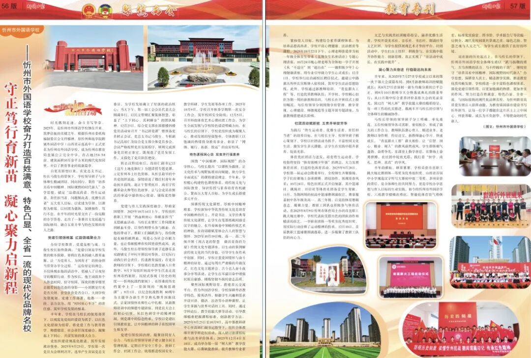 時(shí)光鐫刻足跡,奮斗書(shū)寫(xiě)華章。2025年,是忻州市外國(guó)語(yǔ)學(xué)校繼往開(kāi)來(lái)、筑夢(mèng)啟航的關(guān)鍵之年。根據(jù)忻州市委機(jī)構(gòu)編制委員會(huì)文件精神,原忻州師范學(xué)院附屬外國(guó)語(yǔ)中學(xué)(山西省示范高中)正式更名為忻州市外國(guó)語(yǔ)學(xué)校,成為忻州市教育局直屬公立完全中學(xué),在占地258.58畝、建筑面積10萬(wàn)余平方米的現(xiàn)代化校園里,開(kāi)啟了教育事業(yè)的嶄新篇章。
